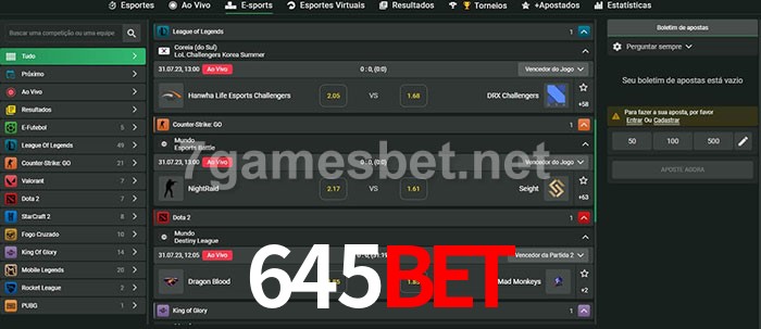 O 645Bet oferece uma grande seleção de opções de apostas em e-sports com probabilidades competitivas